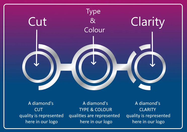 Diamond jewellery with an identifiable logo that represents the type and quality of each diamond in each piece of jewellery.